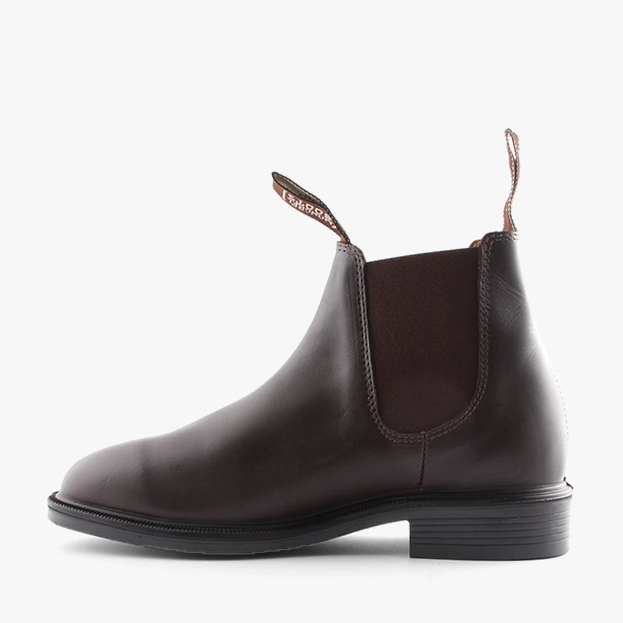 805070 by Mongrel Boots is a men’s leather riding boot featuring wide side elastic gussets to slip on and off with pull tabs and a low heel.