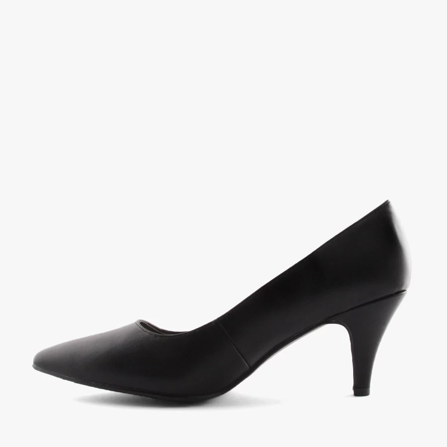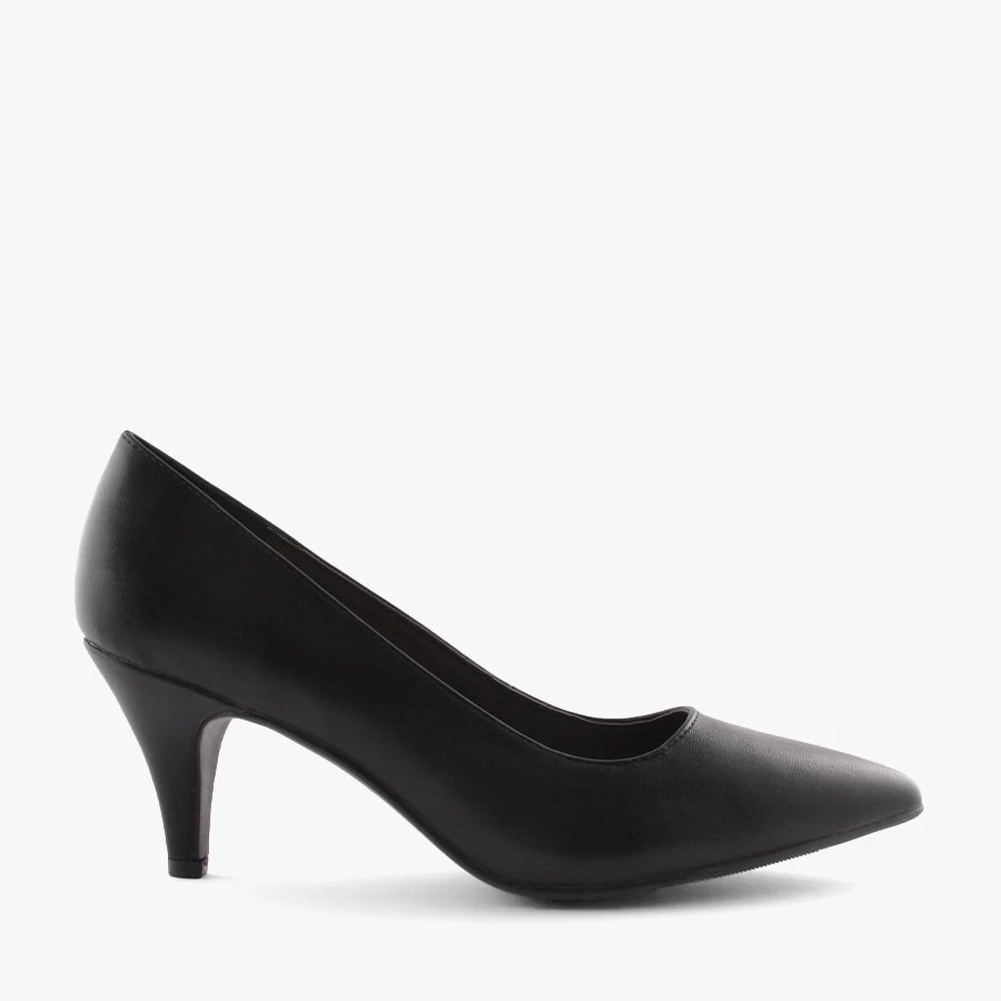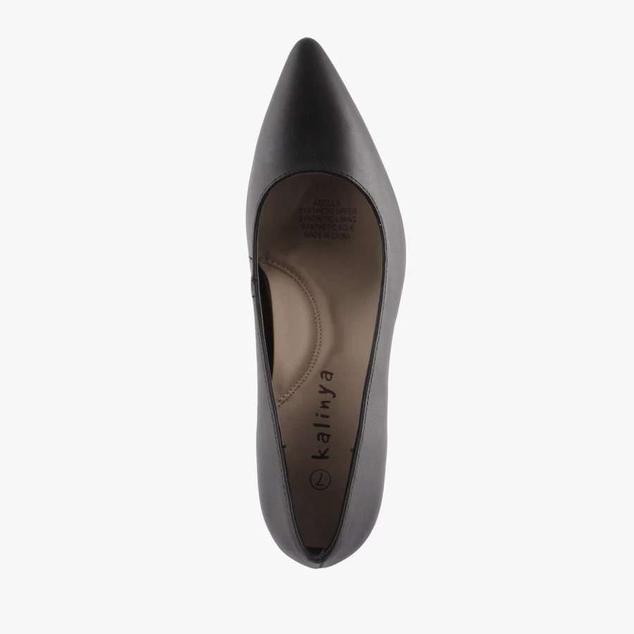 Abella Black by Kalinya is a women’s basic pump featuring a pointed toe, smooth upper and cushioned insole.