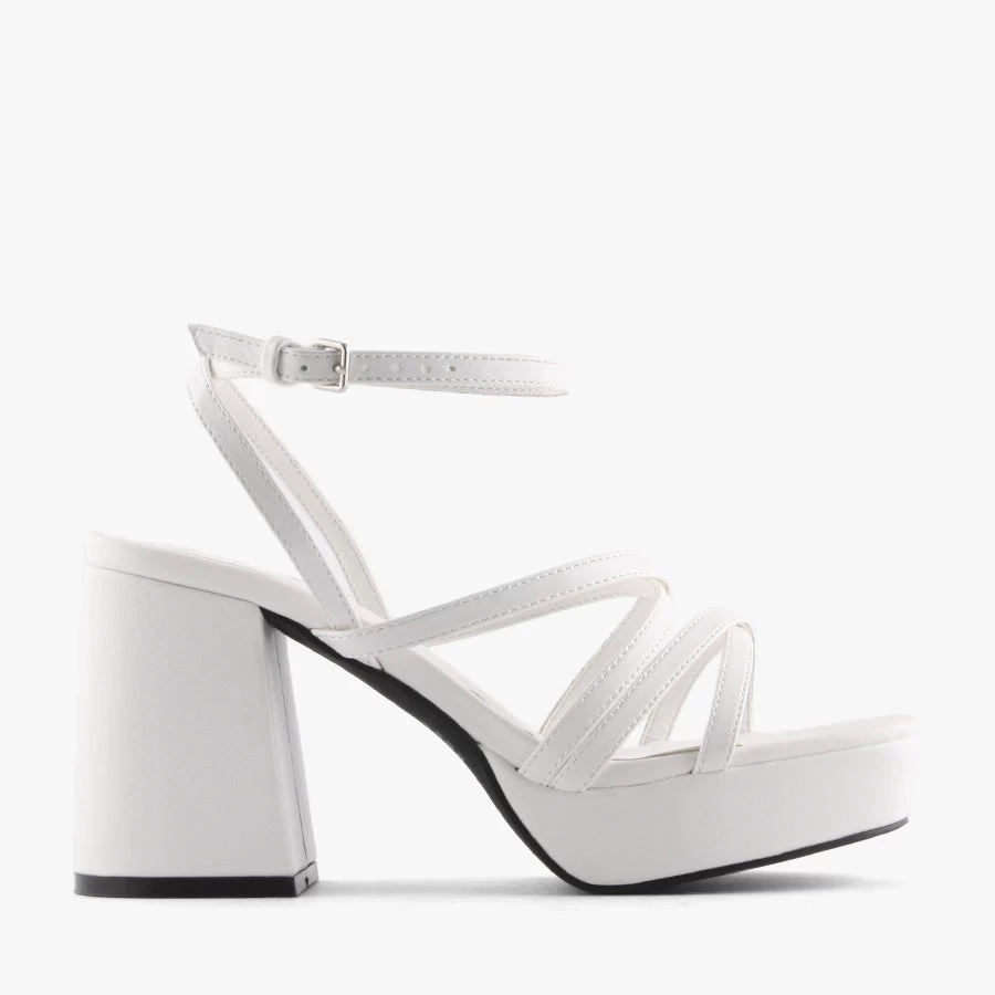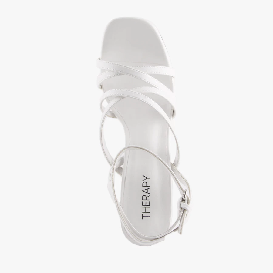 Stand out in Ada by Therapy. This strappy block heel features a an adjustable abkle strap and a smooth leather-look upper.