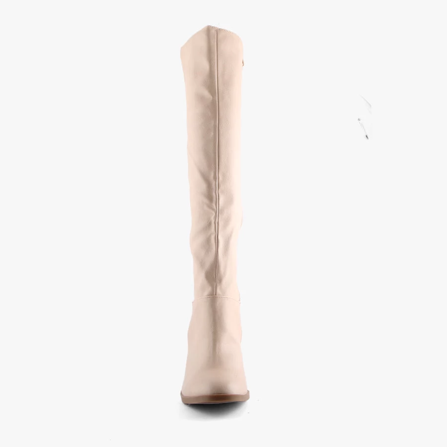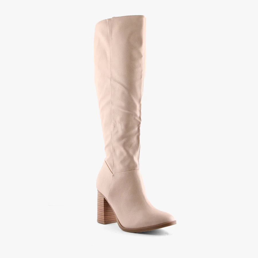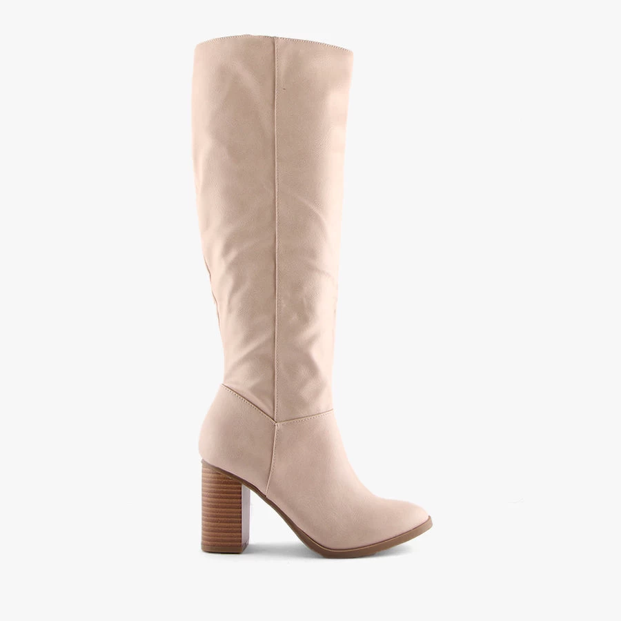 Affair by Pied A Terre is a classic style women’s knee high boot featuring a full length side zipper with an almond toe and stacked heel.