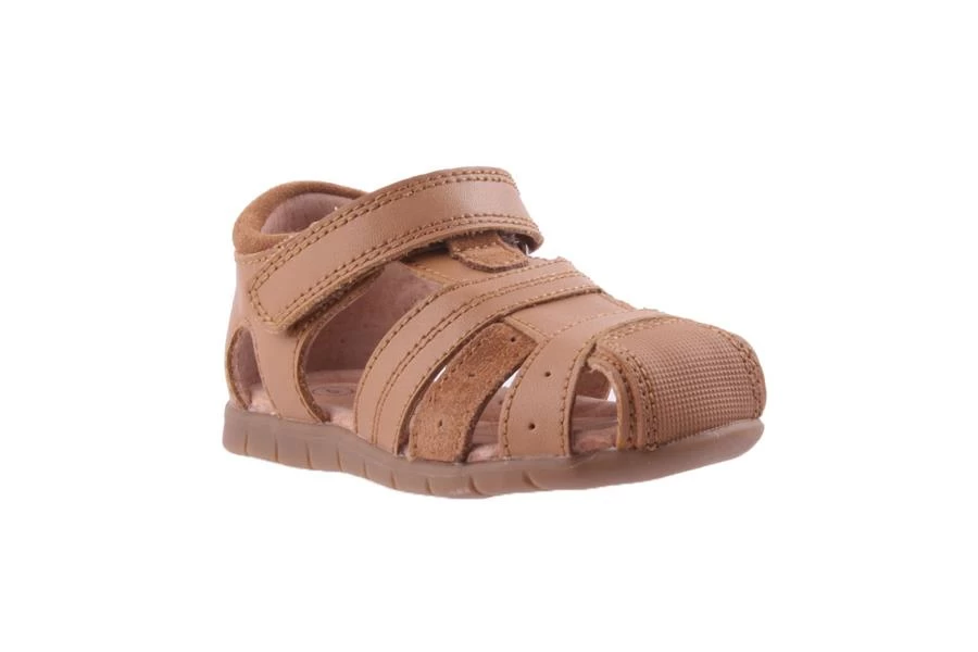 Albion by Grosby is an infant’s sandal featuring a covered toe with a leather and suede upper finished with a leather lining and velcro strap closure.