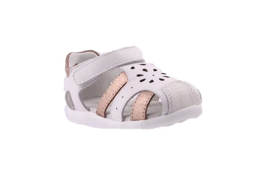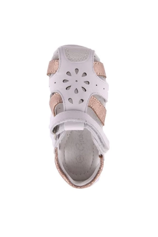 Alisa by Grosby is an infant’s sandal featuring a leather upper with glitter trim and a velcro strap closure. Finished with a leather lined insole with arch support.