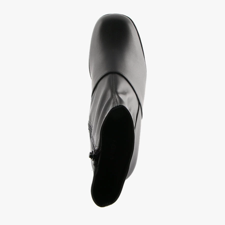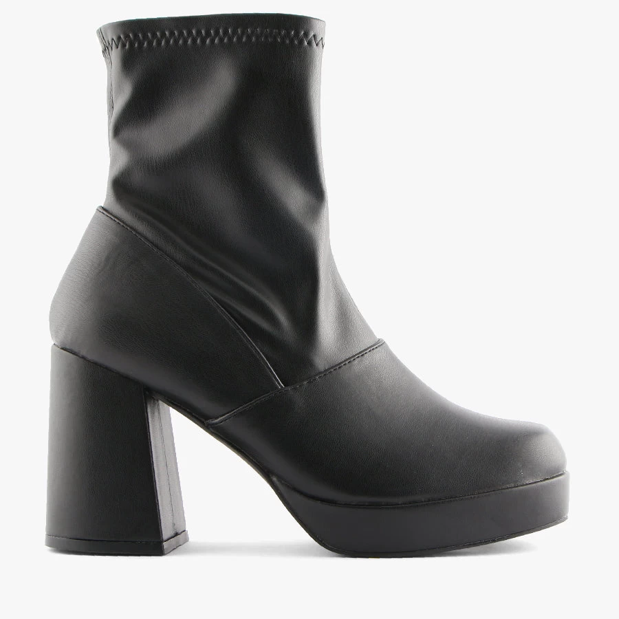 Make a statement in Avril by Verali. This dress boot features a flared block heel, square toe design and a stretch fabric upper that will fit comfortably around the leg.