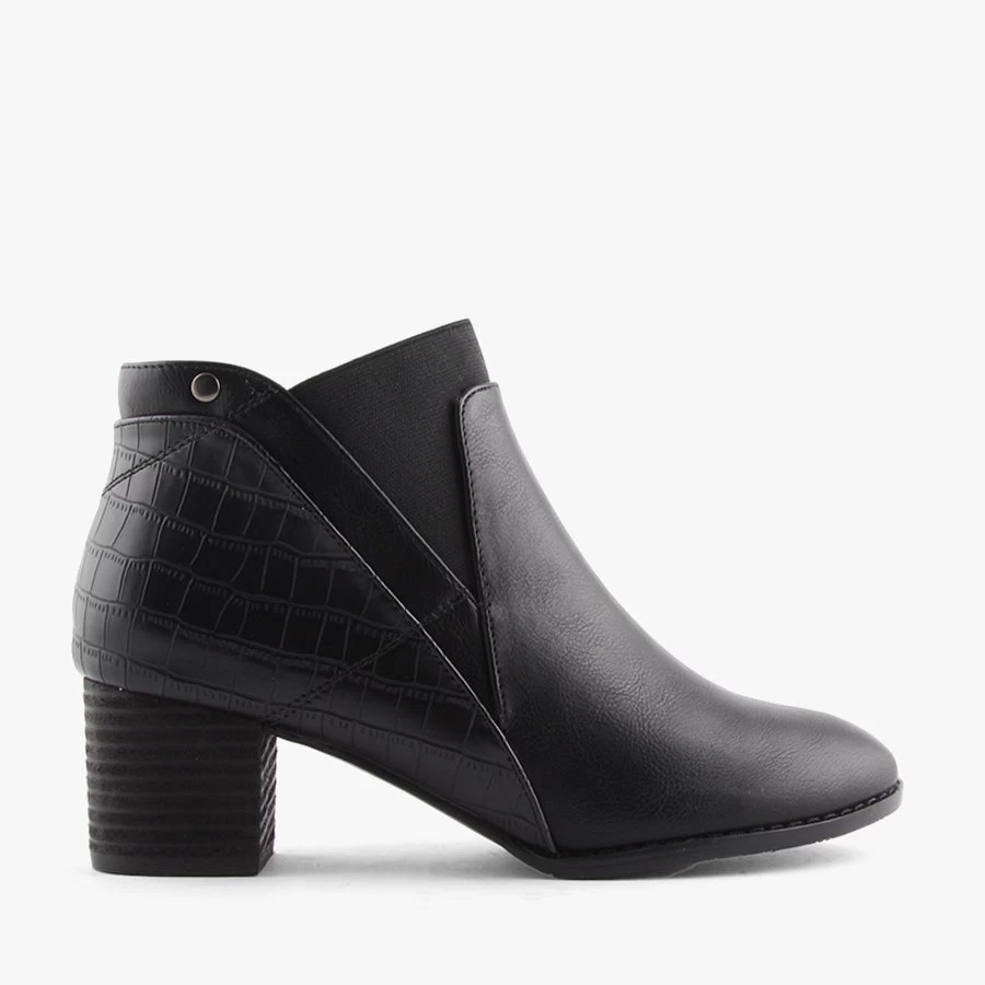 Bellona by Step On Air is a women’s dress boot featuring a comfortable low heel, croc printed panel on the back and elastic panel on the front for easy wear.