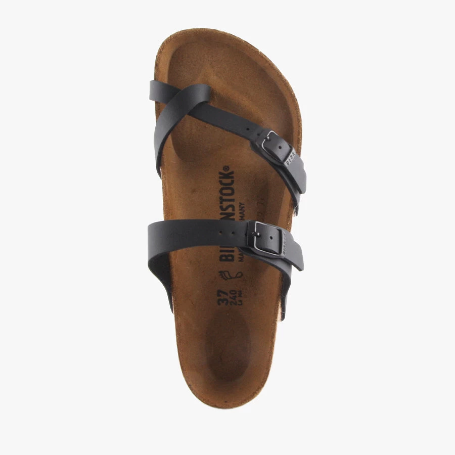 Mayari by Birkenstock is a women’s sandal featuring two adjustable buckled straps with an open back. Mayari is designed to fit the foot with its deep footbed and allows the feet to breathe in their natural position.