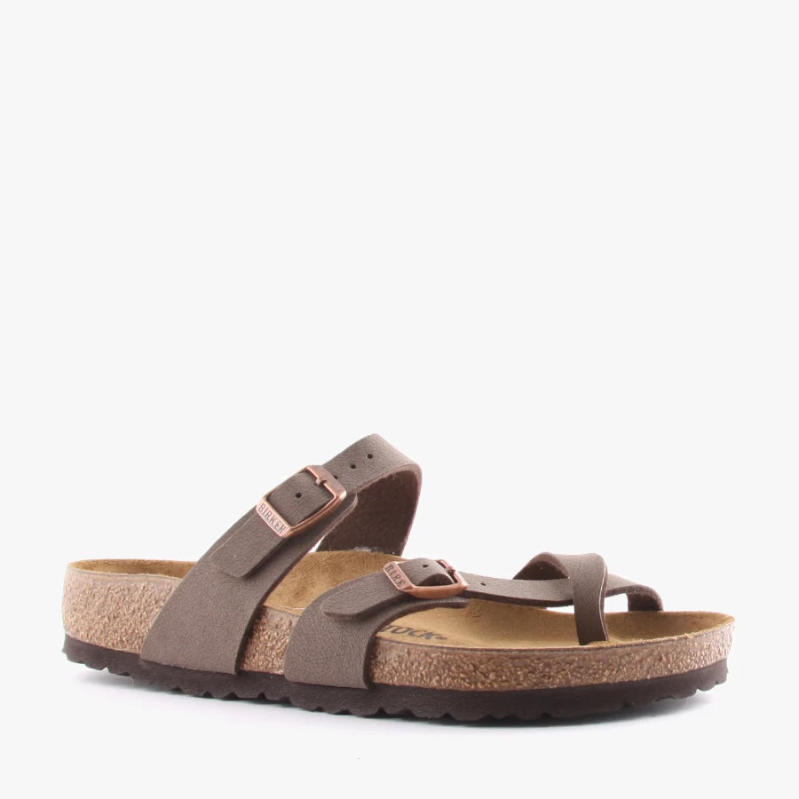 Mayari by Birkenstock is a women’s sandal featuring two adjustable buckled straps with an open back. Mayari is designed to fit the foot with its deep footbed and allows the feet to breathe in their natural position.