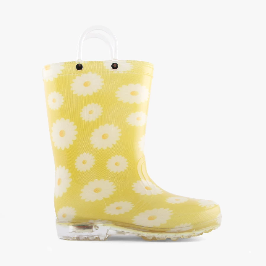 Daisy by Jellies is a Kid’s LIGHT UP Gumboot featuring pull on handles on the top. Perfect for rainy days.