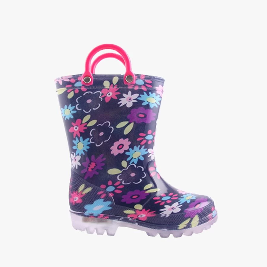 Daisy by Jellies is a Kid’s LIGHT UP Gumboot featuring pull on handles on the top. Perfect for rainy days.