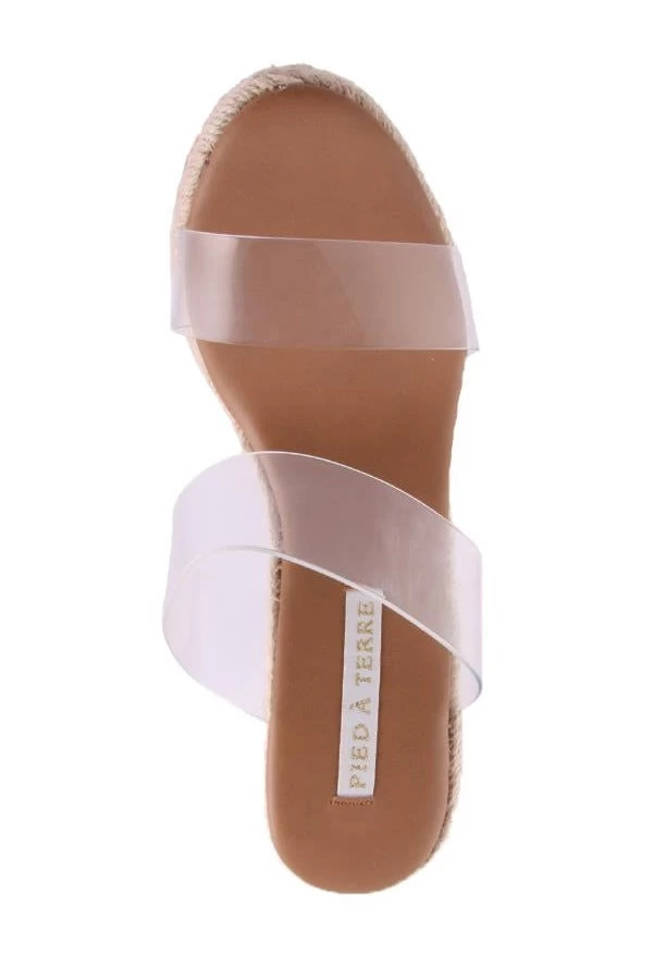 Dana by Pied A Terre is a women’s espadrille that features a padded sole and two wide clear straps.