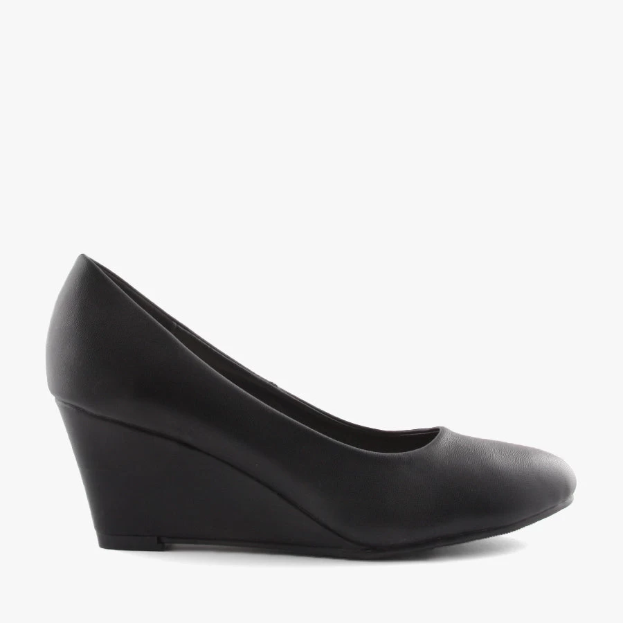 Darla by Kalinya is a slip on wedge with a cushioned inner sole and rounded toe.