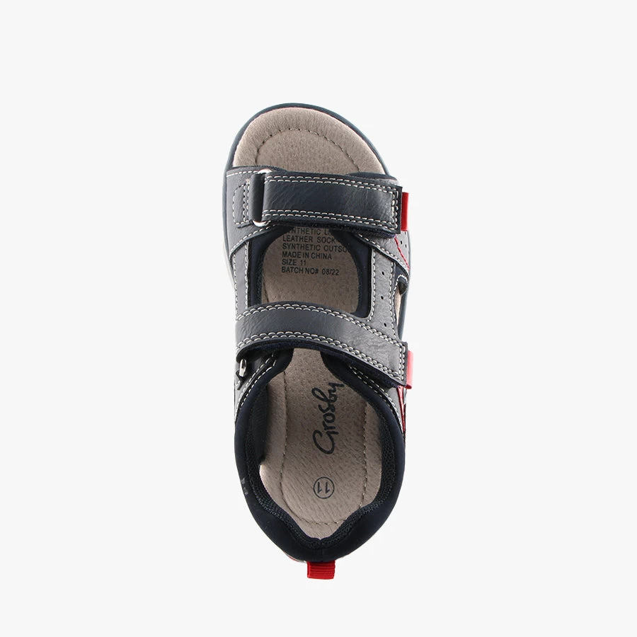 Dennis by Grosby is a kids sandal that features a shock absorbing light weight sole, a padded collar for extra comfort and dual velcro straps.