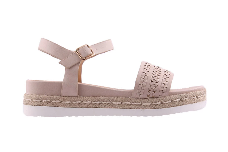 Disco by Verali is a style that will compliment every look. This sandal features a platform sole, espadrille trim and woven look toe strap.