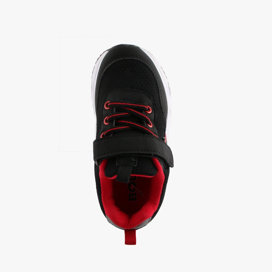 Doo by Lightning Bolt is a kids sneaker that features a velcro strap closure with bungee laces for easy wear and an ultra lightweight sole with built in flashing lights.