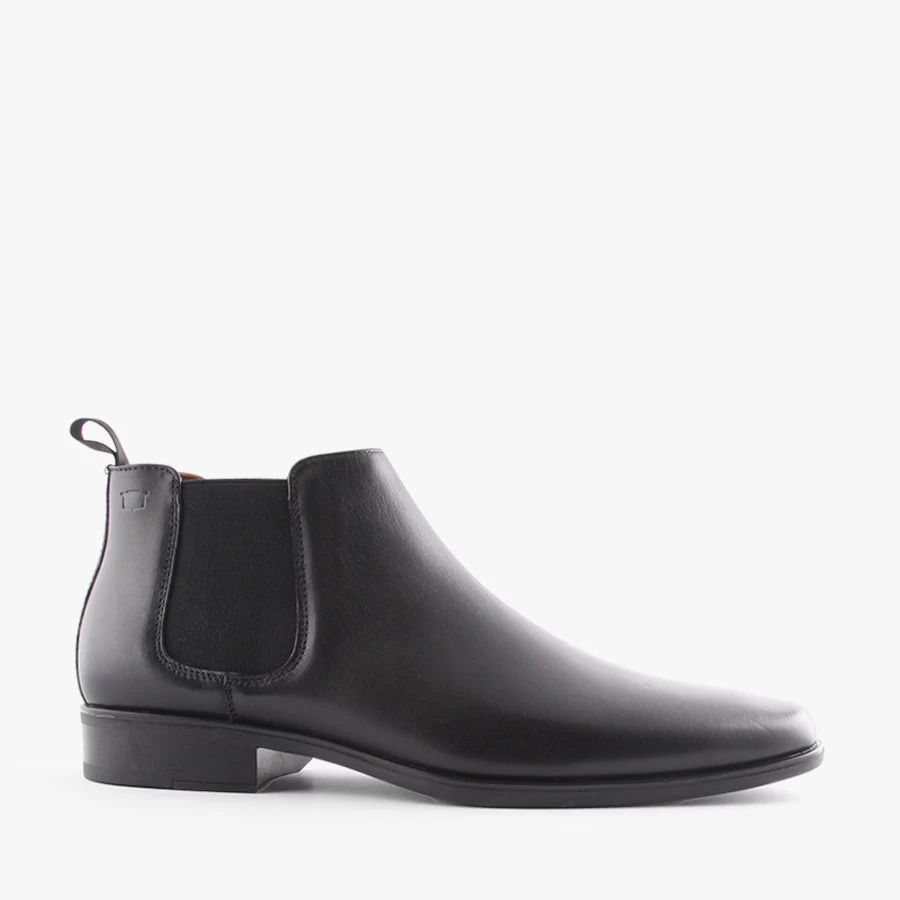 Jackson by Florsheim is a men’s dress boot featuring a soft leather upper with elastic sides and a tapered toe. Ideal for business or formal occasions.