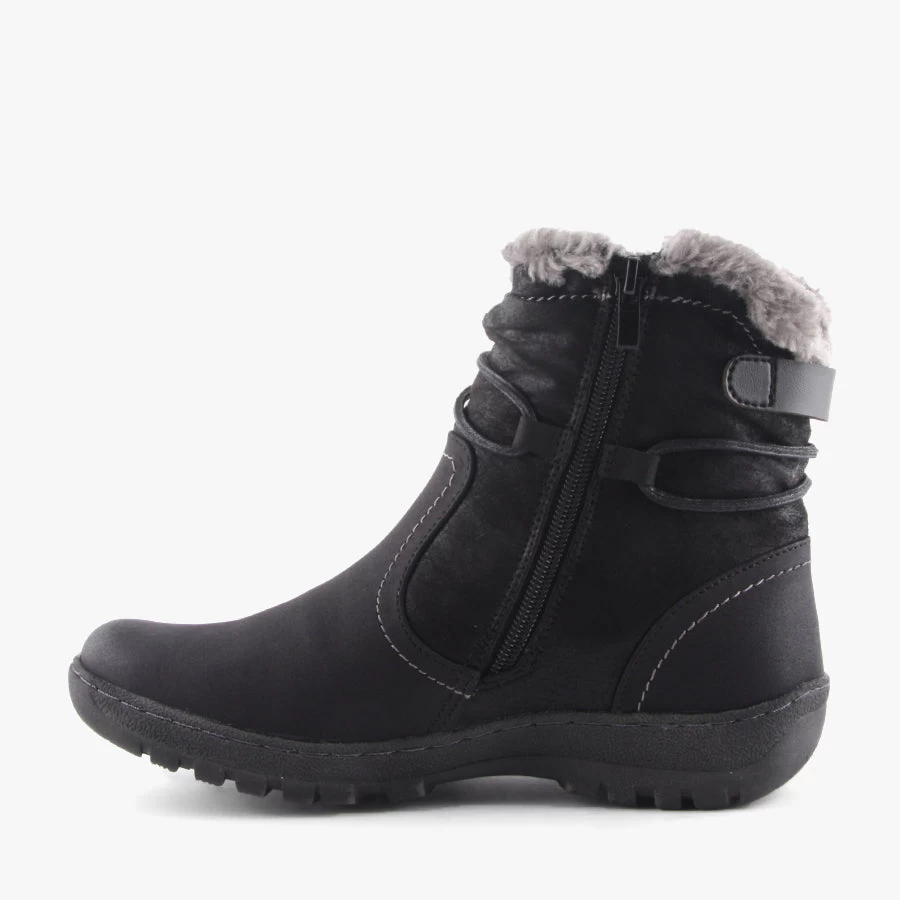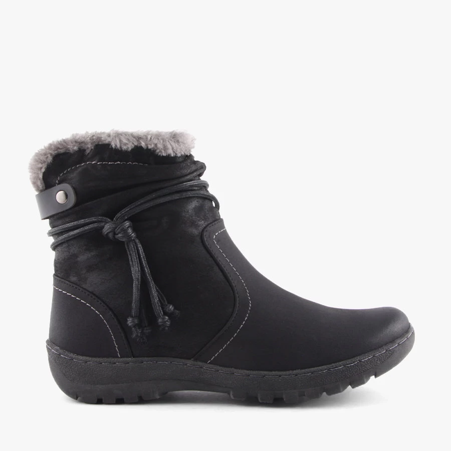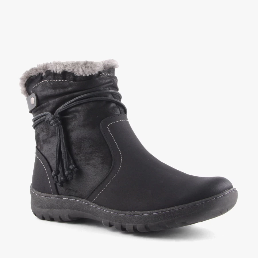 Gemma by CC Resorts is a women’s ankle boot featuring a mix textured upper with a faux fur lining a side zipper closure. Ideal for completing your casual winter outfit.