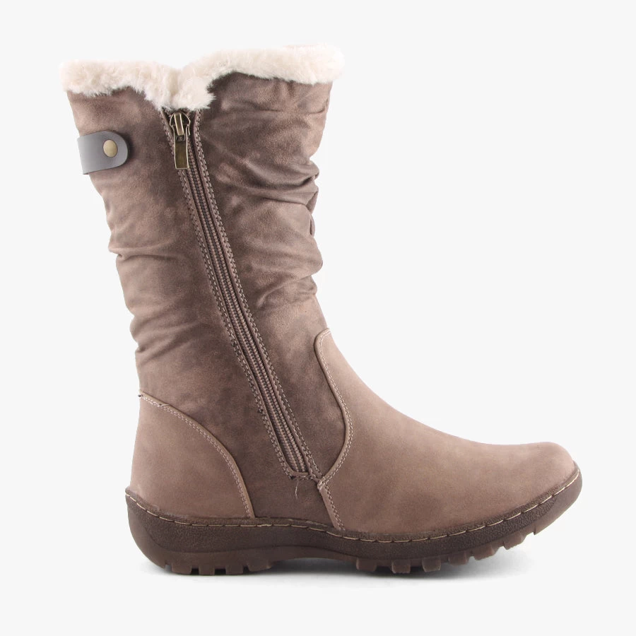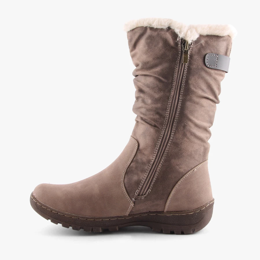 Goose by CC Resorts is a mid length woman’s boot that features a soft faux fur lining, comfortable flat sole and dual zips for easy wear.