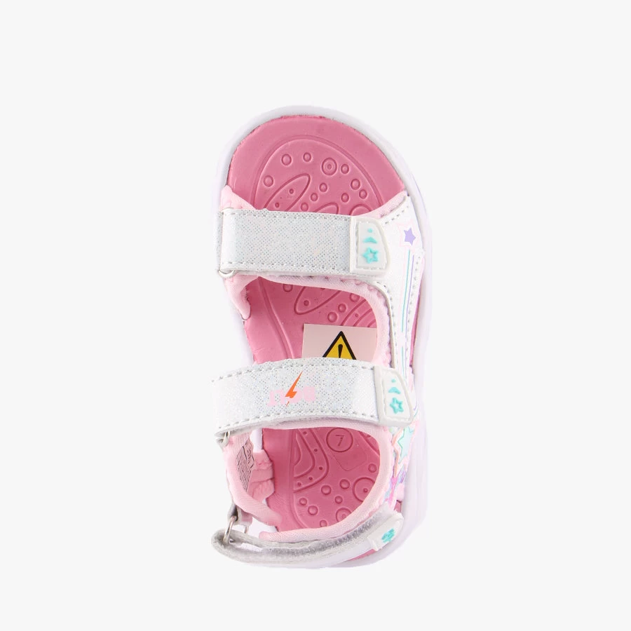 Hattie by Lightning Bolt is a kids sandal that features an ultra lightweight sole with soft cushioning under the foot, 3 adjustable velcro straps for the perfect fit and a light up sole.