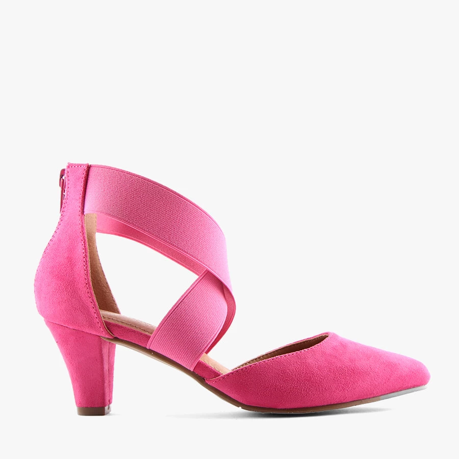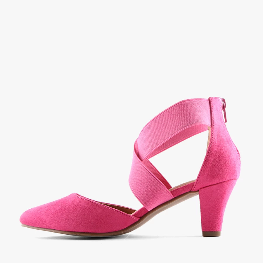 Step into the comfort of Hella by Step On Air. This women’s style features a microsuede upper with elastic cross straps and a zippered back on a mid height heel.