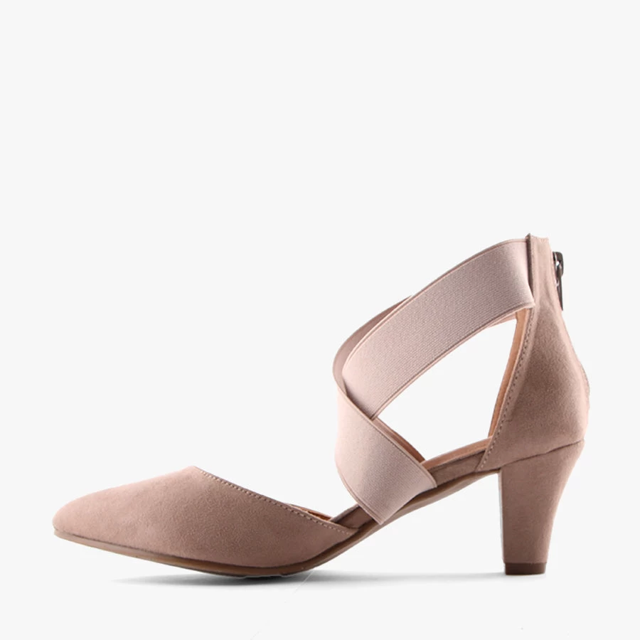 Step into the comfort of Hella by Step On Air. This women’s style features a microsuede upper with elastic cross straps and a zippered back on a mid height heel.