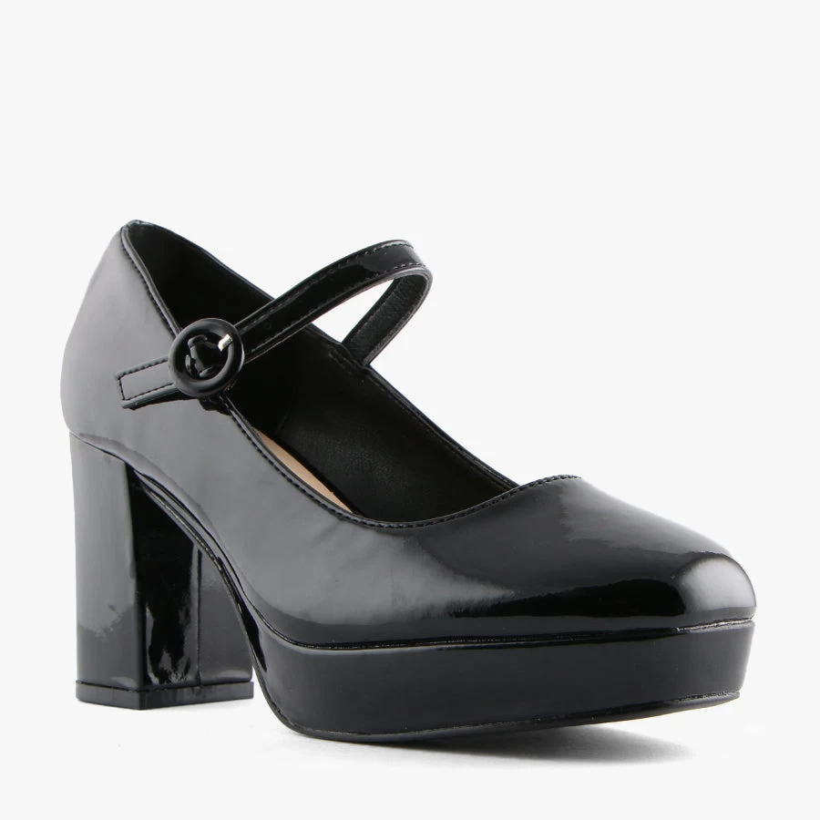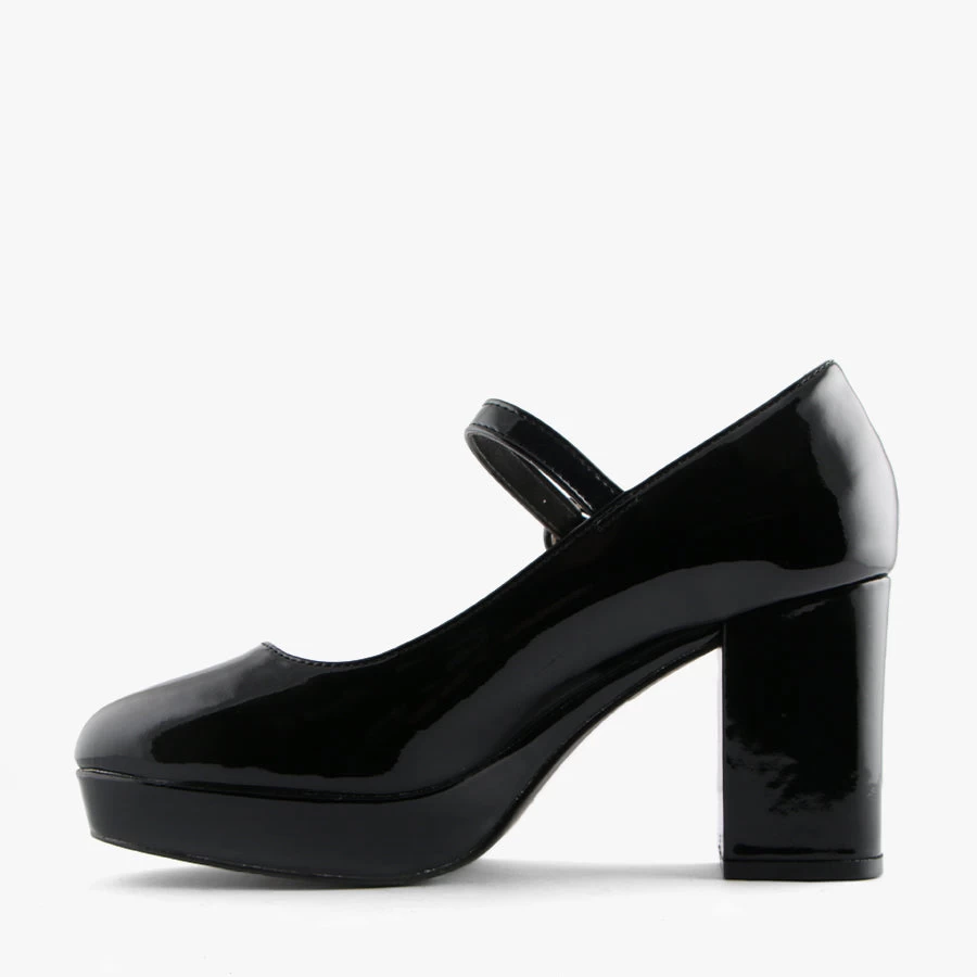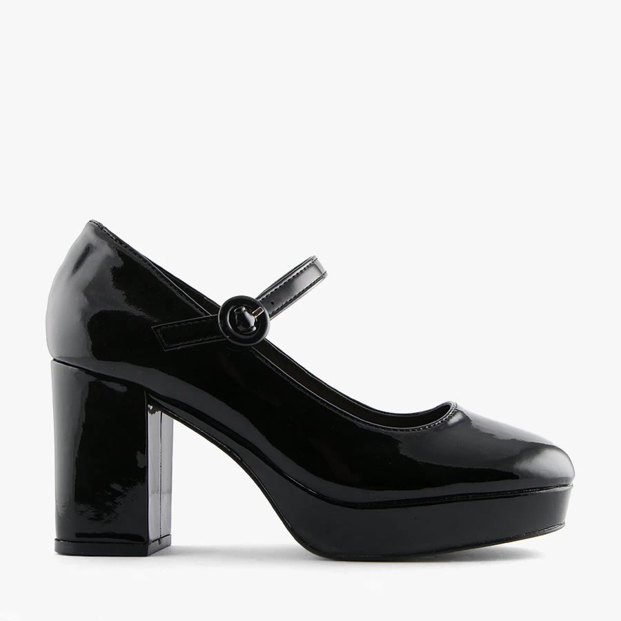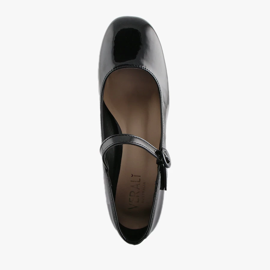 Hennessy by Verali is a Mary Jane style set on a comfortable low platform. Hennessy features a block heel, buckled strap and patent upper.
