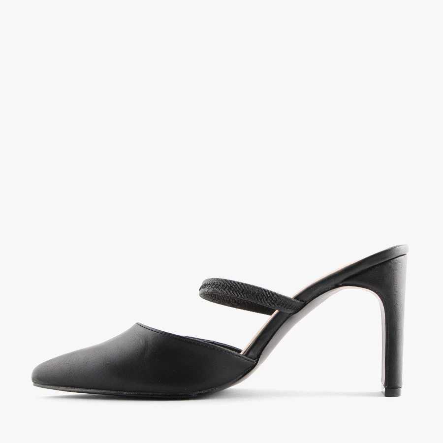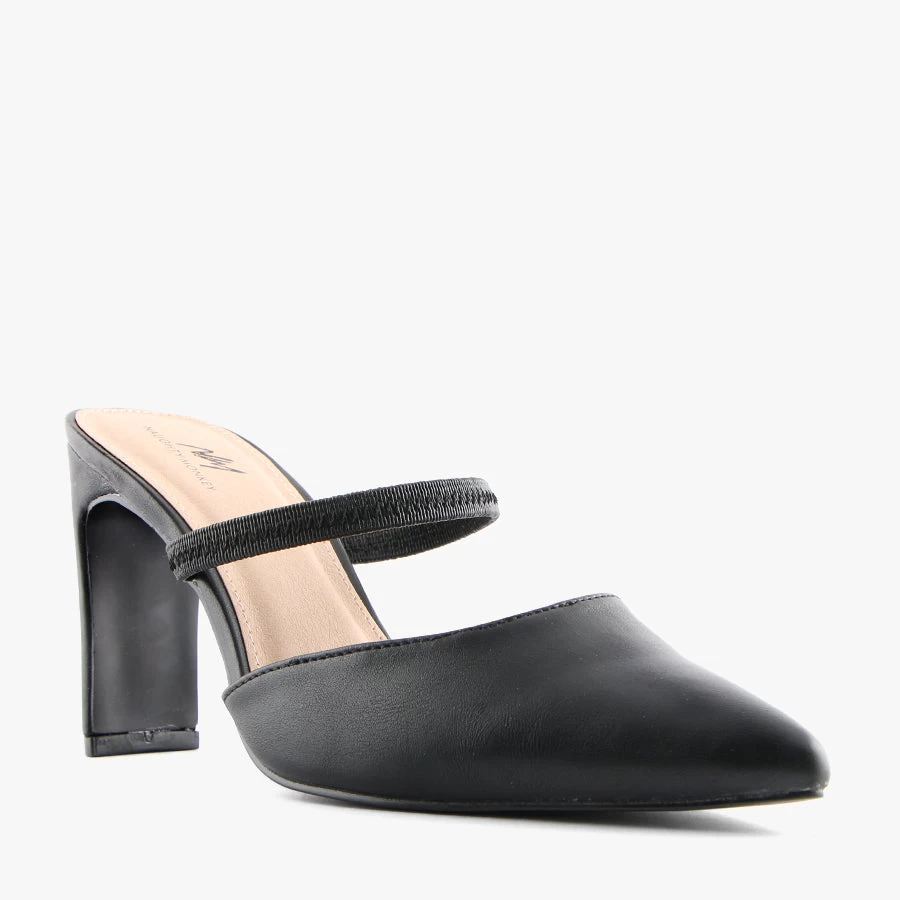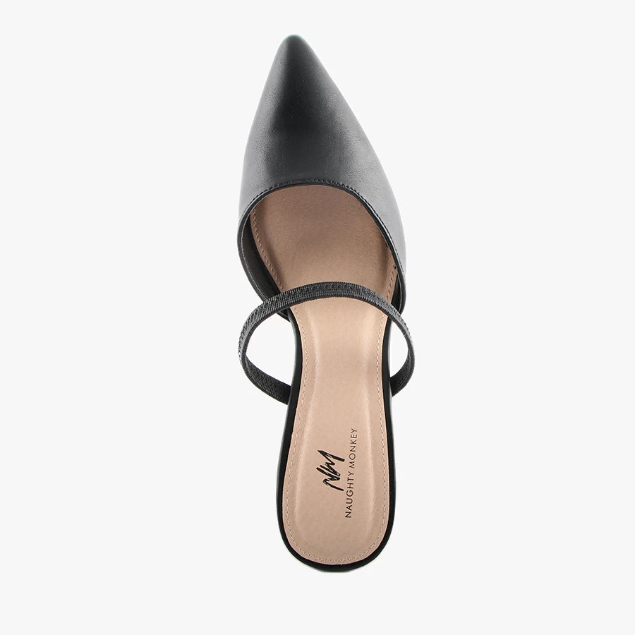 Dress up in Jade by Naughty Monkey. Jade features an on trend slim line block heel, closed pointed toe and a slim elastic strap to keep your foot in place.