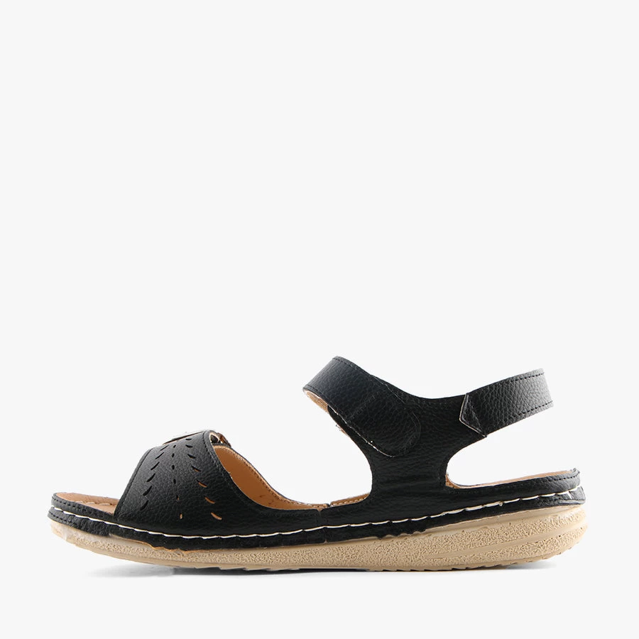 Janelle by Bellissimo is a women’s comfort sandal that features a lightweight sole, velcro strap across the ankle and buckled strap across the toes.