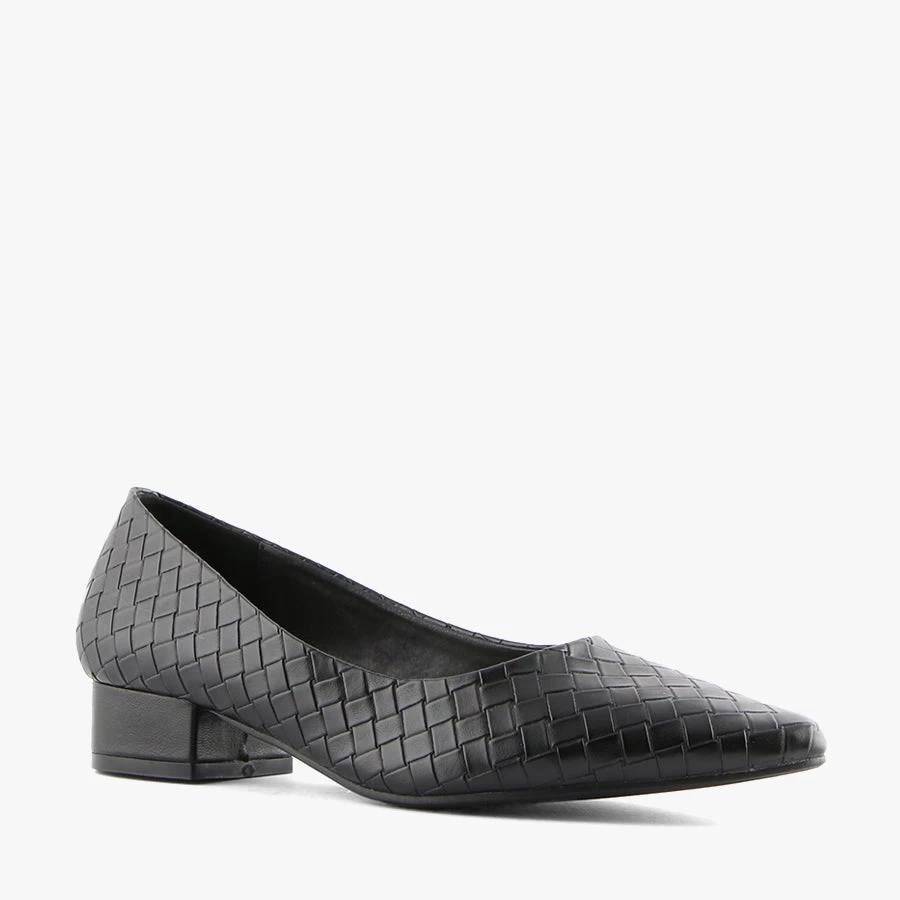 Jinx by Bay Lane is a sophisticated low heel court shoe with textured patterned upper and low all day wear heel. Perfect for work or everday wear.