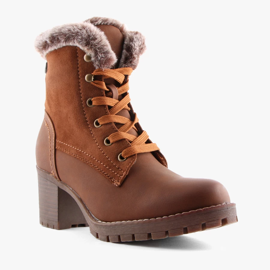 Kanaris by Bellissimo is a women’s boot that features a comfortable block heel, a lace up front with side zip and a faux fur collar.