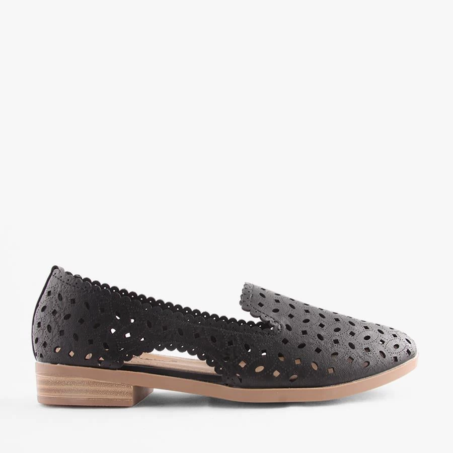 Kaylee by Bellissimo is a women’s loafer that features a comfortable flat sole and fun perforated details in the upper.