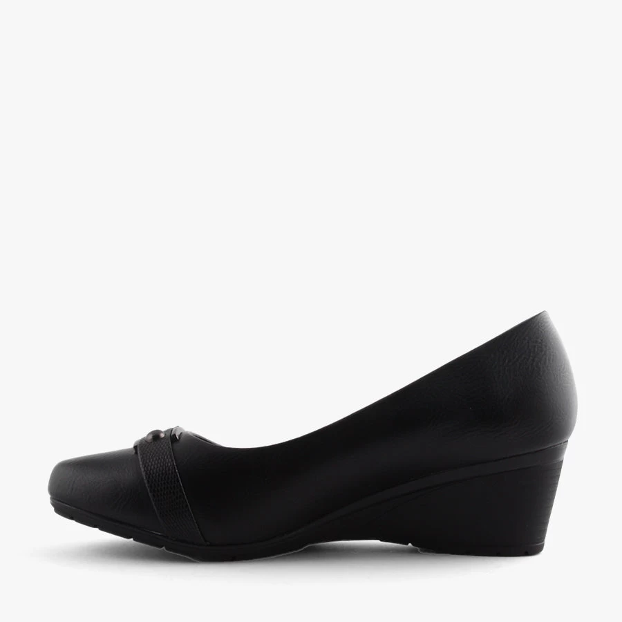 Kelsey by Baretraps is a women’s wedge that features a padded insole for all day comfort and a croc printed cross strap with buckle detail.