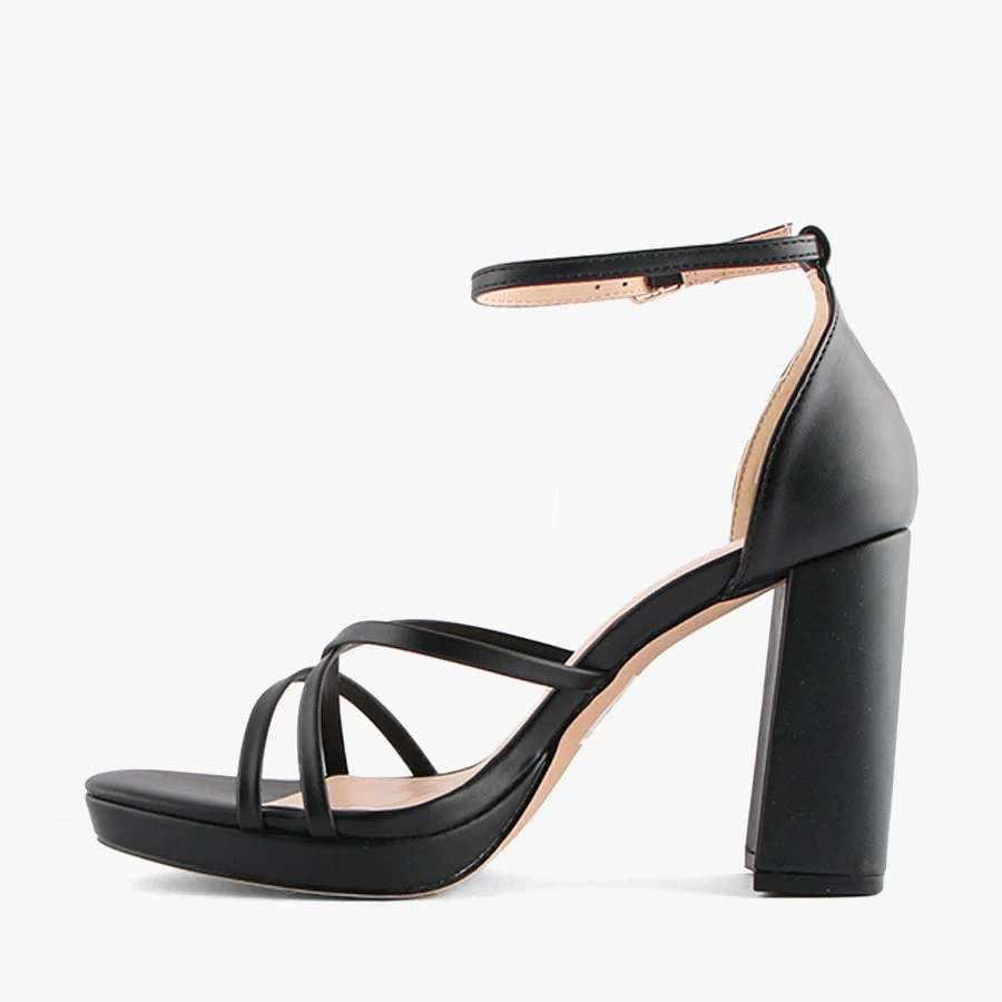 Lara by Verali is perfect for your next event or night on the town. Lara features a softly squared toed, block heel, a strappy crossover design and ankle strap with buckle.