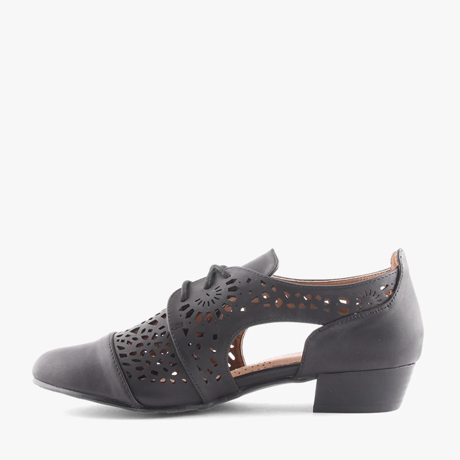 Linda by Step On Air is a lace up style with side cut outs and an intricate laser-cut upper. Linda features a low block heel and comfort footbed.