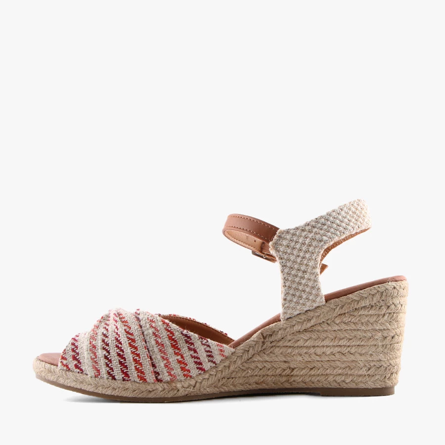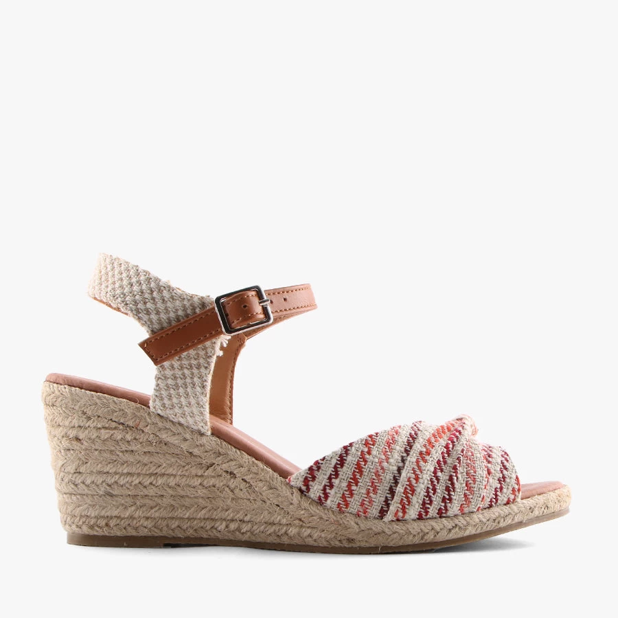 Lou by Bellissimo is a women’s espadrille wedge featuring a single strap across the toes with fabric detail and a buckled ankle strap.