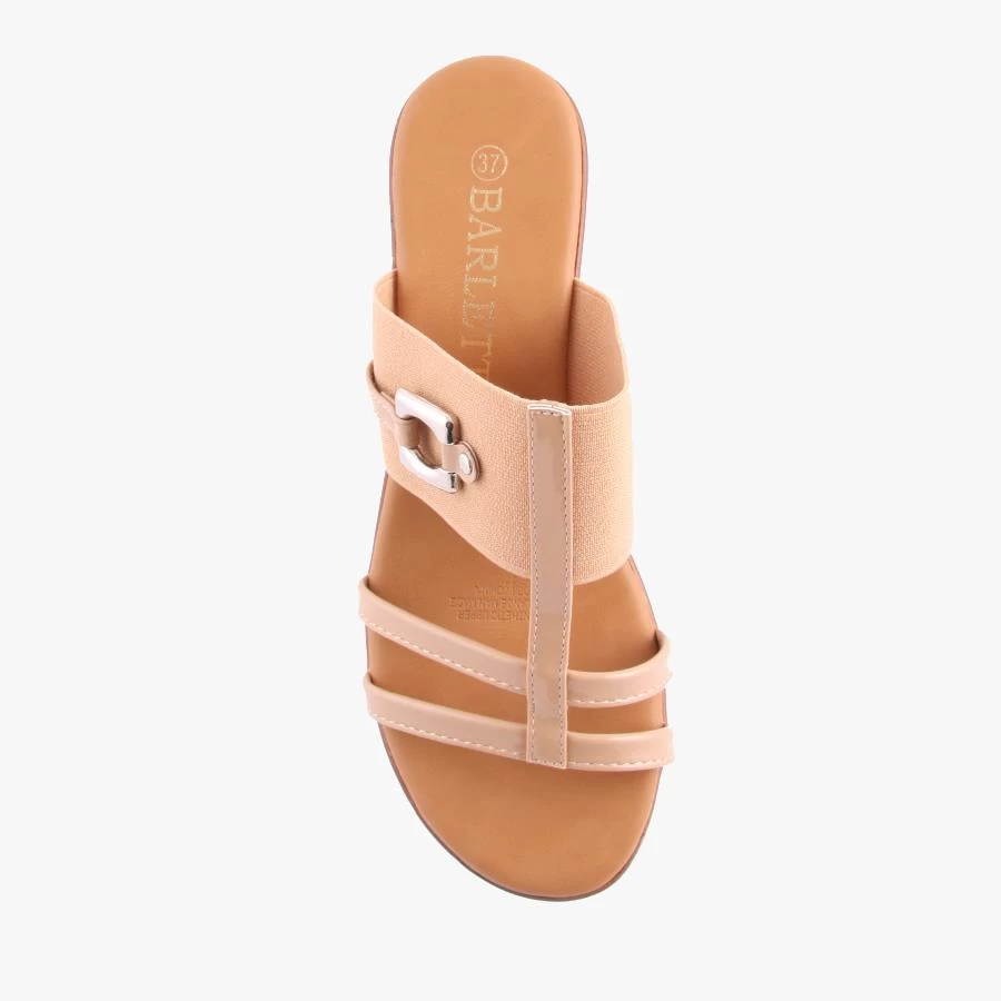 Maid by Barletta is a women’s wedge sandal featuring a padded sole and a wide elastic top strap for a comfortable fit.