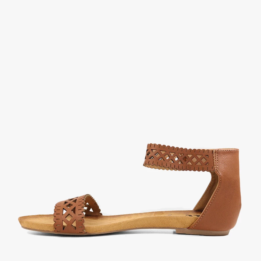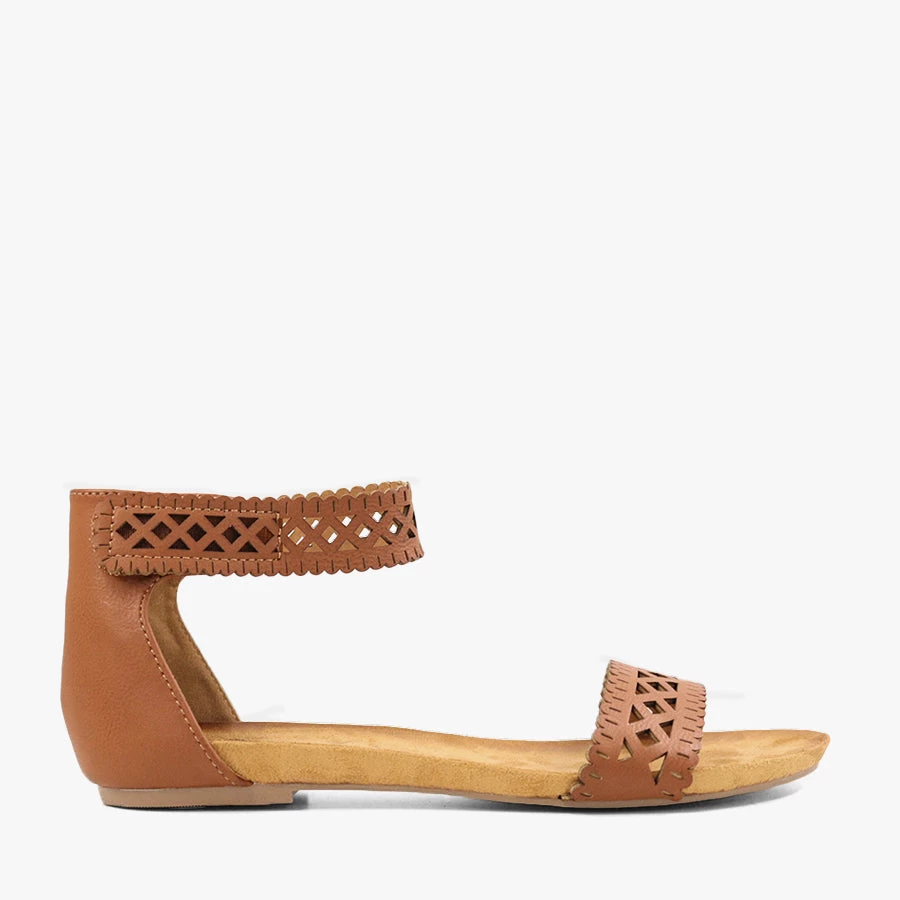 Marcia by London Rebel is a women’s flat sandal featuring a laser cut design across the toes and around the ankle, closing with a velcro strap and finished with a soft microsuede lined insole.