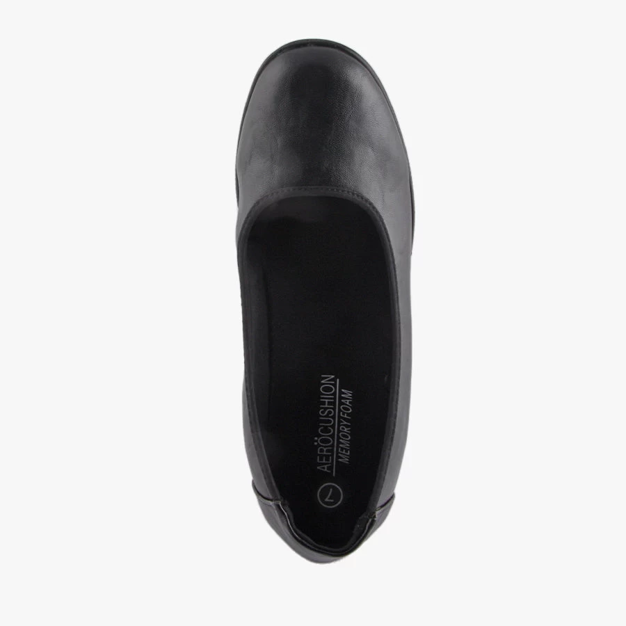 Marti by Aero Cushion is a women’s slip on wedge featuring an almond shaped toe and a memory foam insole on a lightweight sole.