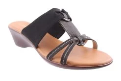 Matera by Barletta is a women’s wedge sandal featuring a padded sole and a wide elastic top strap for a comfortable fit.