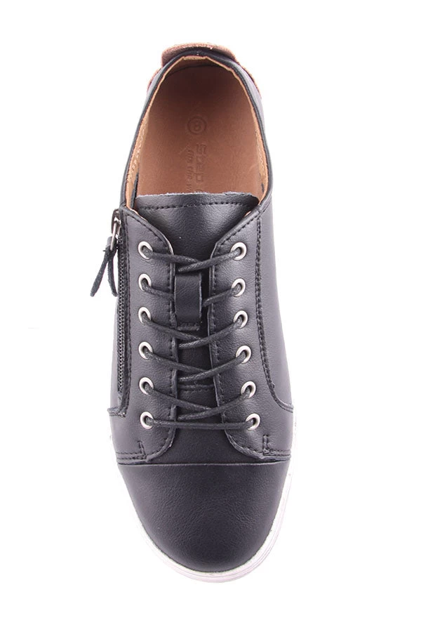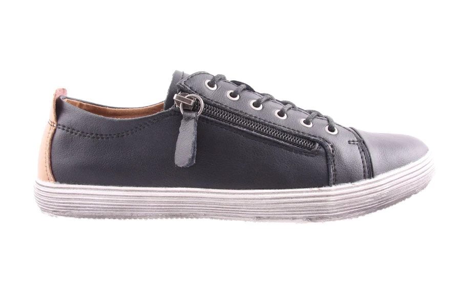 Metty by Step on Air is a women’s lace up sneaker featuring a leather upper, a removable padded leather lined insole and a side zip for easy wear.