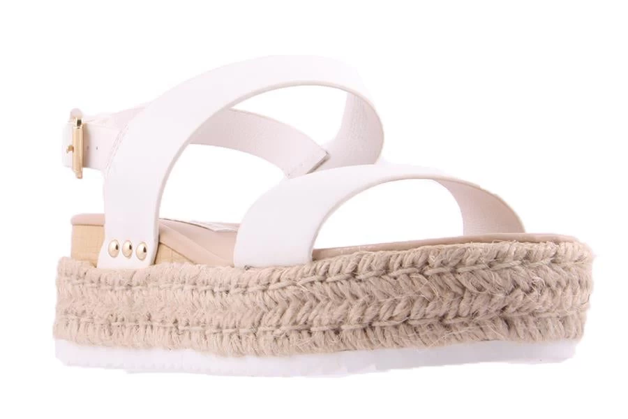 Step out in Milko by Pied A Terre this summer. Milko is a flatform wedge sandal featuring a thick espadrille sole with wooden-look accents, gold studs and boasting a buckled slingback heel strap.
