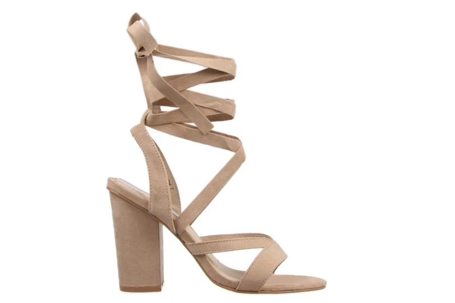Minella by London Rebel is a women’s dress heel featuring a tie up ankle strap and microsuede upper on a block heel.