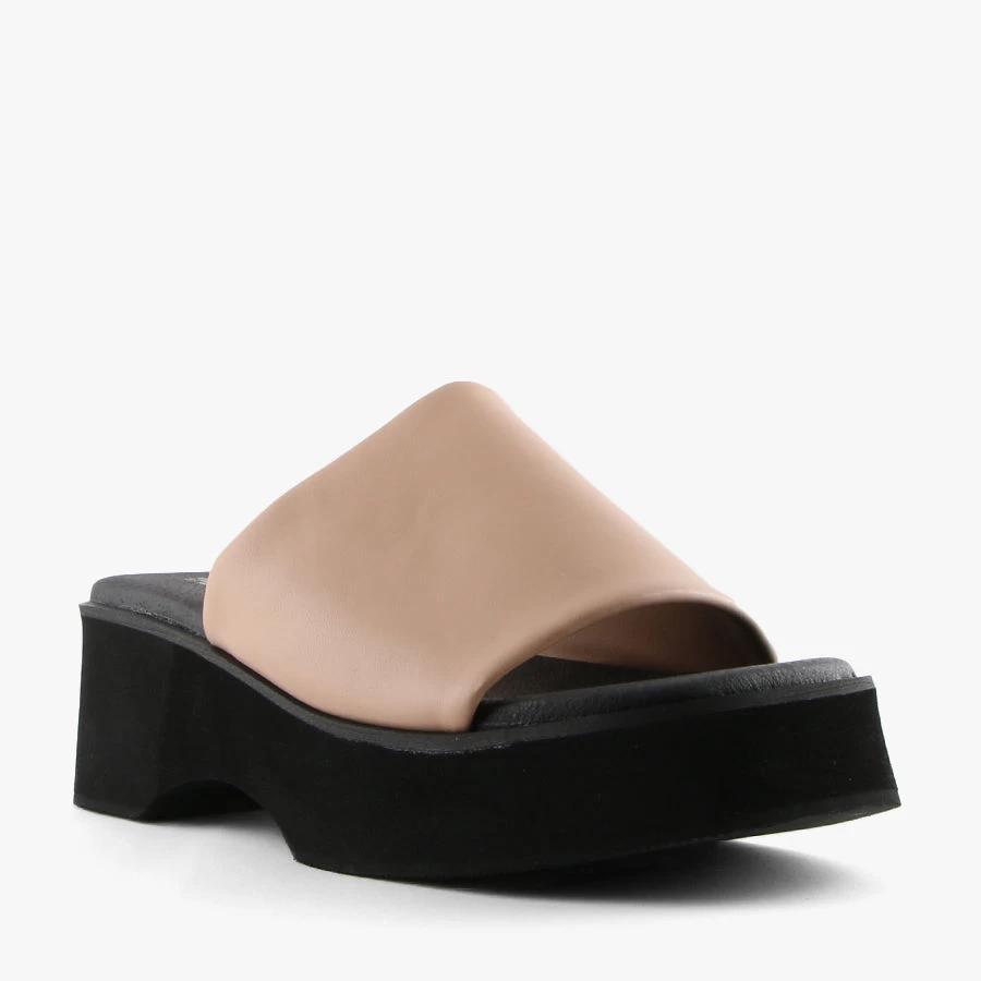 Naomi by Therapy is a women’s chunky platform, featuring a squared off toe and soft stretch non-leather upper.