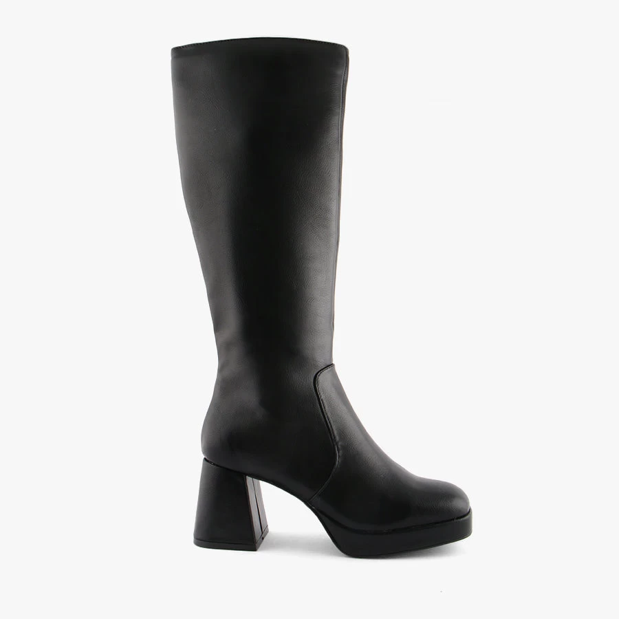 Stand out this season in Naya by Therapy. Naya features a flared block heel, low platform sole and a full length side zip for easy wear.