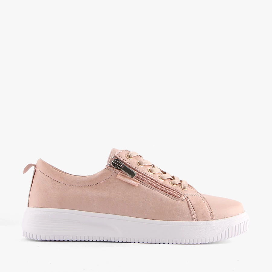 Nelly by Le Sansa is a women’s lace-up sneaker that features a lightweight sole and soft leather upper with a side zip for easy wear. Nelly is an orthotic friendly style that has a removeable insole with comfortable arch support.