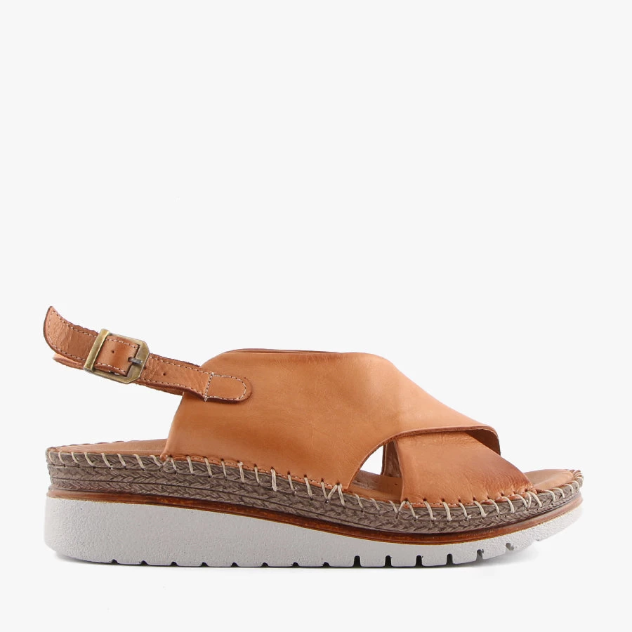 Paz by Donna Style is a women’s wedge sandal that features a soft leather upper set on a lightweight padded sole with cross over straps and a buckled ankle strap.