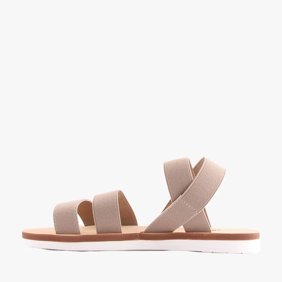 Pella by Naughty Monkey is a flat strappy sandal featuring an elastic strap design, and a soft, spongey sole. This casual sandal will be sure to keep you comfortable throughout the day.