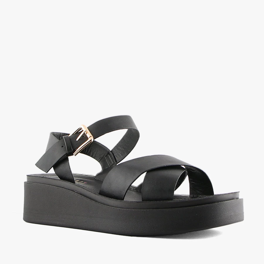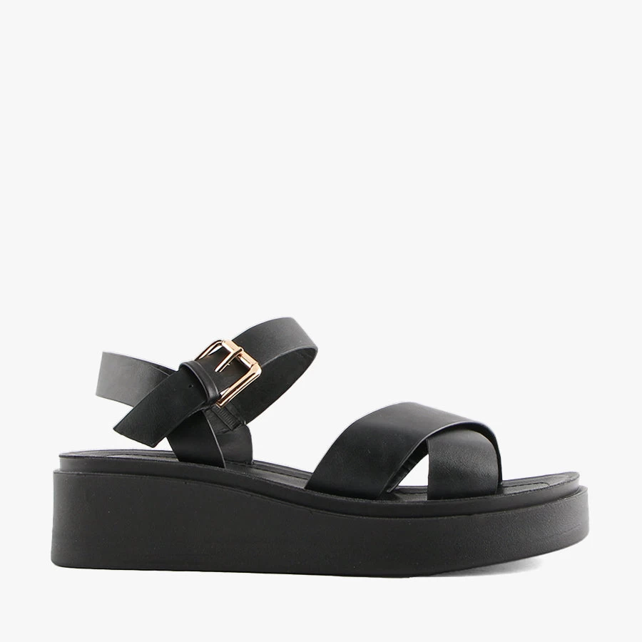 Radar by Verali is a womens chunky flatform sandal featuring a cross toe and adjustable strap. Great paired with jeans or your favorite dress.