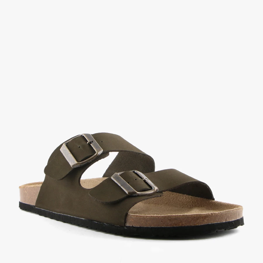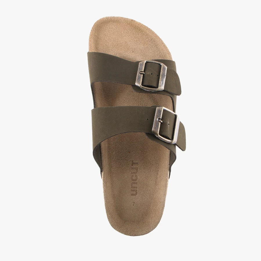 Ridley by Uncut is a men’s slip on sandal featuring two adjustable buckle straps on a soft leather upper and a molded footbed that provides extra comfort and support.