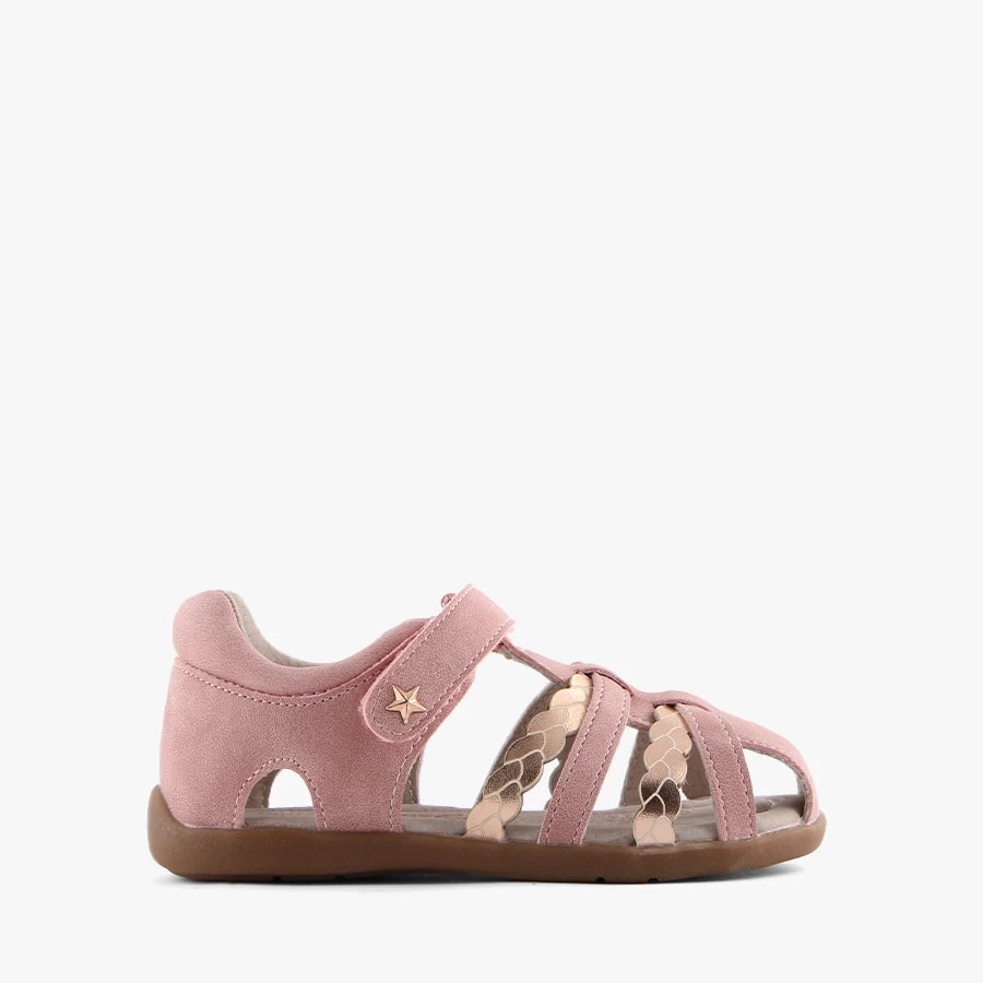 Sancia by Grosby is an infants sandal featuring a platted look embellishments with an adjustable velcro strap and a leather lining.