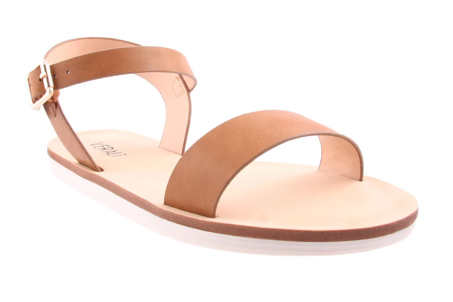 Sass by Verali features a soft lightweight foam sole, a smooth leather look upper and a simple ankle strap with buckle.