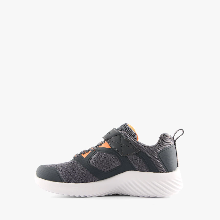 Bounder-Voltvor by Skechers is a lightweight kids sneaker that features a velcro strap closure with elastic bungee laces. A machine washable design.